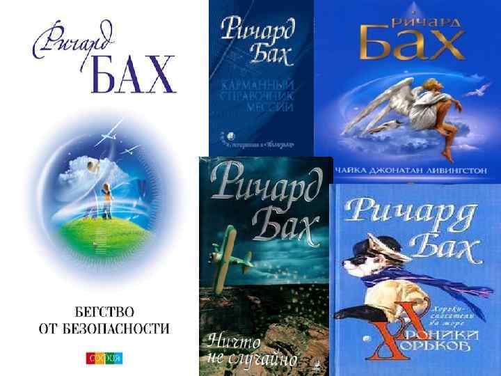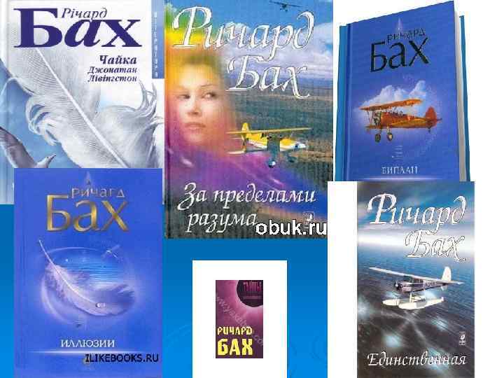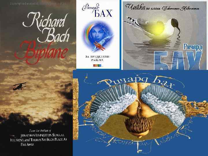 Ø Ø Ø Ø Творчий доробок митця “Чужий на землі” (1963) “Біплан” (1966) “Нічого не буває випадково” (1969) “Чайка на ім‘я Джонатан Лівінгстон” (1970) “Дар крил” (1974) “Немає такого місця “далеко” (1976) “Ілюзії: Подорожі месії мимоволі” (1977) “Міст через вічність” (1984) “Єдина” (1988) “Втеча від безпеки” (1994) “За межами мого розуму” (1999) “Політ” (2003) “Посібник месії”(2004) та ін.
