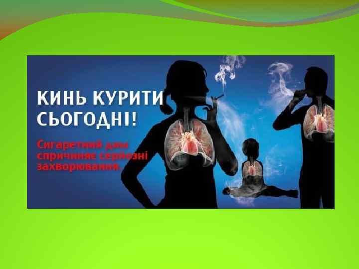 ФАКТИ ПРО КУРІННЯ Ø На нашій планеті палять приблизно 1, 3 мільярди людей. Ø За 1 секунду на Землі викурюється 300 000 цигарок. Ø Куріння викликає 6% смертей у всьому світі. Ø Щорічно від паління вмирає 3 мільйони людей. Ø 800 мільйонів дітей, які живуть сьогодні, будуть убиті тютюном у дорослому віці. Ø Загальна маса недопалків на планеті за 1 рік становить 2520000 тонн.