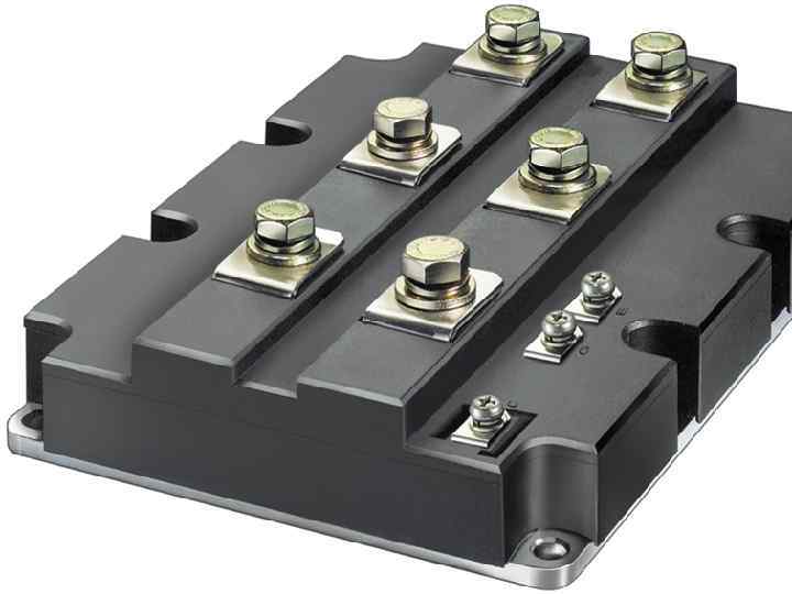 Силові напівпровідникові модулі Особливості конструкції: • об’єднання в модулі: • силового керованого ключа та зворотнього діода, • декількох ключів; • силової схеми цілого перетворювача енергії • Напівпровідниковий кристал та електрична схема ізольовані від основи Переваги: • зменшення габаритів; • спрощення конструкції ПЧ та його вартості; • Підвищення надійності; • збільшення швидкодії