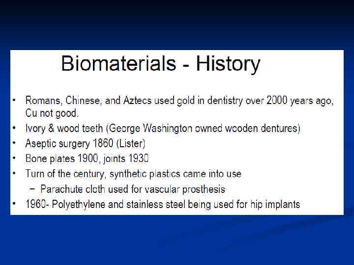 Mechanical Properties of Biomaterials • CASE 2: Modulus of device < Modulus of tissue Can only be used in “low loadbearing applications” (e. g. wrist; not femoral fractures) PLLA (bone plate): E = 2. 7 GPa Cortical Bone: E =17 -24 GPa