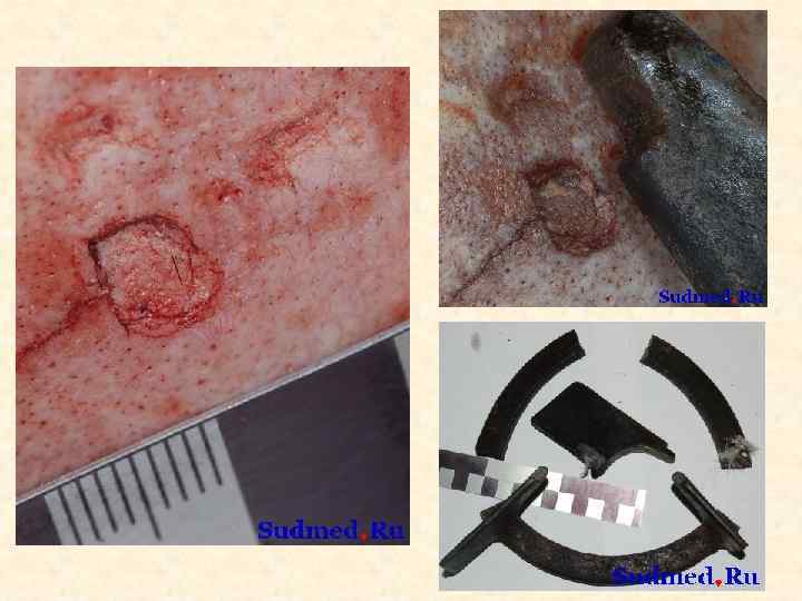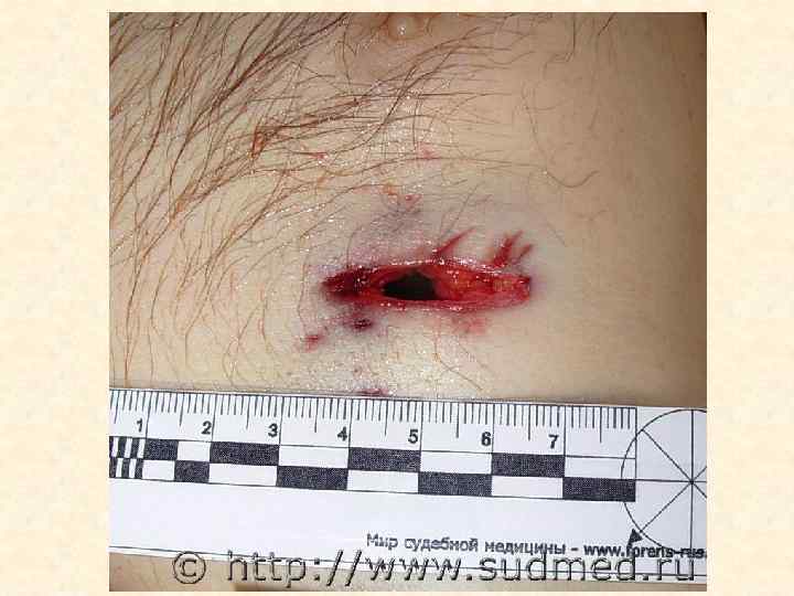 Рана – повреждение кожи глубже сосочкового слоя Судебно-медицинское значение • 1. Факт травмы • 2. Локализация воздействия (прямые и отдаленные) • 3. Давность травмы (признаки заживления) • 4. Механизм травмы (тупой предмет, острый предмет, огнестрельный предмет) • 5. Идентификация повреждающего орудия • 6. Направление воздействия