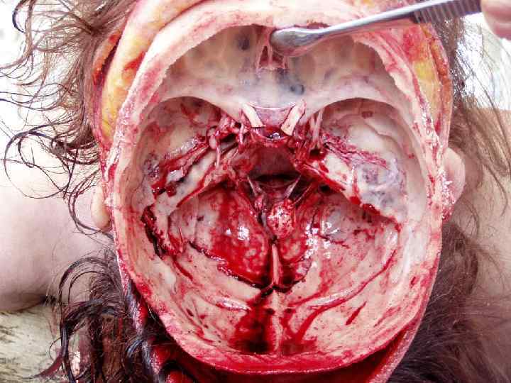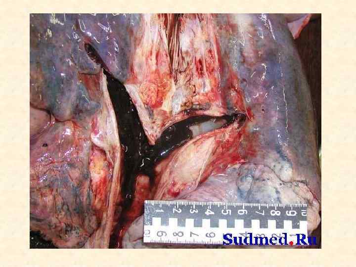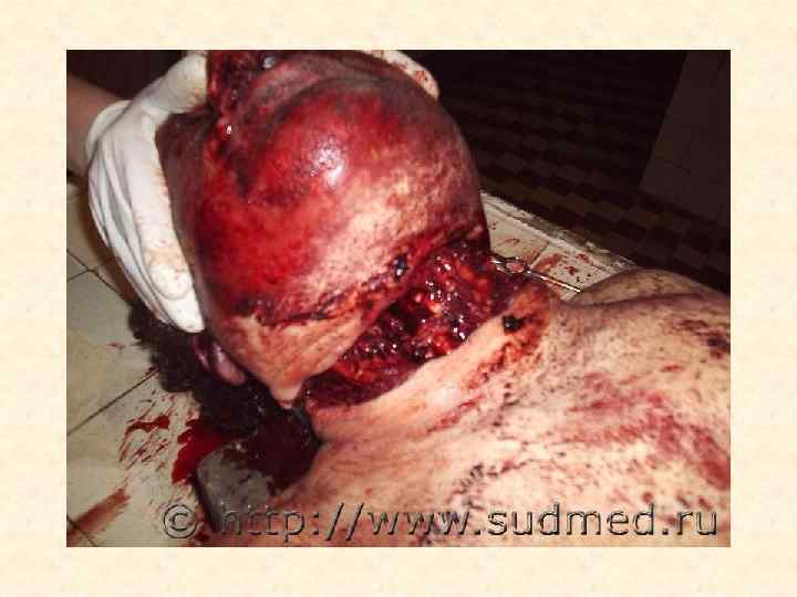 Причины смерти при механических повреждениях • • 1. 2. 3. 4. 5. 6. Первичные: грубые анатомические нарушения целости тела (размятие головы, расчленение и т. п. ) Вторичные: осложнения повреждений Ранние: Кровопотеря (острая и обильная) Сдавление органов излившейся кровью (тампонада) Эмболия (воздушная, жировая, тромбо-) Шок Аспирация крови – асфиксия ДВС-синдром