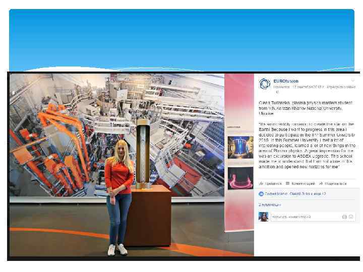 Почему я ? Conference and Summer School « European Summer School 2014 “From the Mystery of Mass to Nobel Prizes: The Physics of the Higgs Boson” » , Strasbourg, France 2014 «Plasma. Surf 2014» Oeiras, Portugal , 2014 «IPP Summer University for Plasma Physics and Fusion Research 2015» Munich, Germany, 2015 «Student Scientific Conference on Applied Physics» Kharkov, Ukraine 2015 (oral presentation) «Ukrainian conference on Plasma Physics and Fusion – 2015» Kiev Ukraine 2015 (poster presentation) « 13 th Kudowa Summer School„Towards Fusion Energy» Kudowa-Zdrój, Poland 2016(oral presentation) «International Conference and School on Plasma Physics and Controlled Fusion» Kharkov, Ukraine 2016 (poster presentation)
