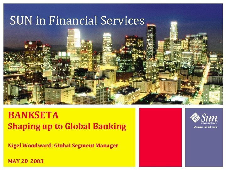 SUN in Financial Services BANKSETA Shaping up to Global Banking Nigel Woodward: Global Segment Manager MAY 20 2003