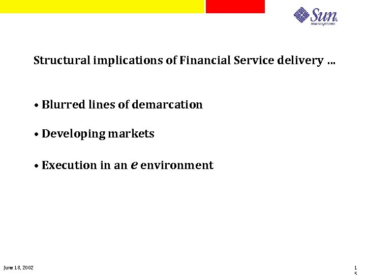 Structural implications of Financial Service delivery … • Blurred lines of demarcation • Developing markets • Execution in an e environment June 18, 2002 1