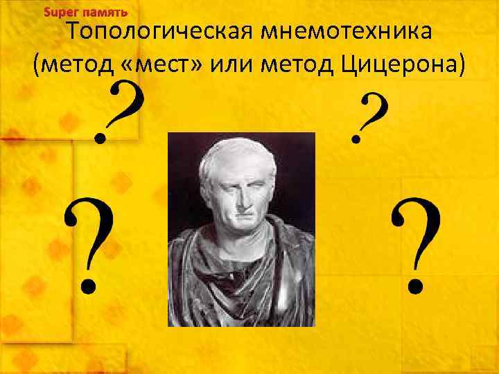SUPER память или запоминание речи Память - сокровищница красноречия. Марк Фабий Квинтилиан