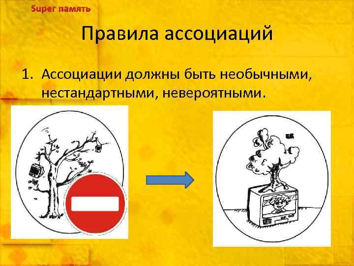 Super память Правила ассоциаций 1. Ассоциации должны быть необычными, нестандартными, невероятными.