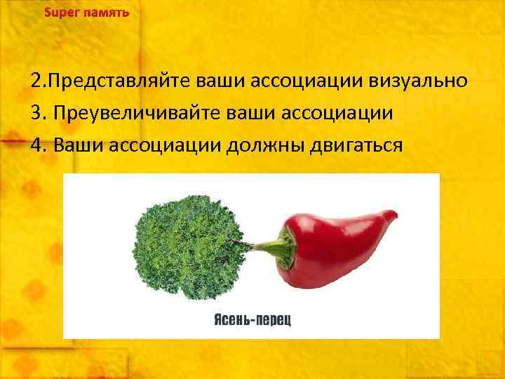 Super память 2. Представляйте ваши ассоциации визуально 3. Преувеличивайте ваши ассоциации 4. Ваши ассоциации должны двигаться