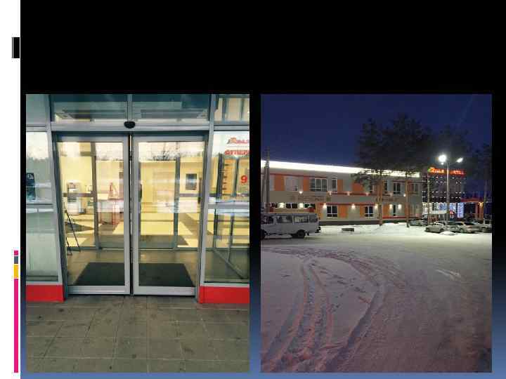 Входная группа Вход в магазин чистят каждый день, вывески не заснежены, в темное время суток название супермаркета подсвечивается.