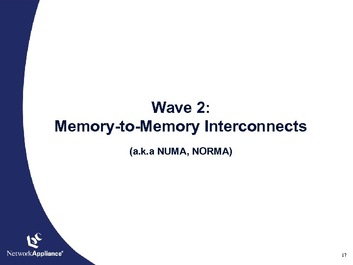 Wave 2: Memory-to-Memory Interconnects (a. k. a NUMA, NORMA) 17
