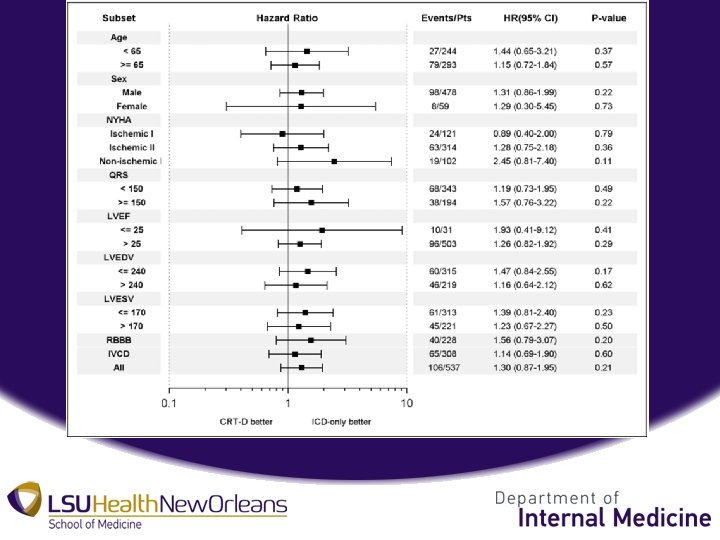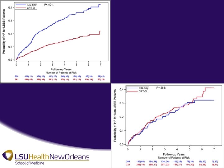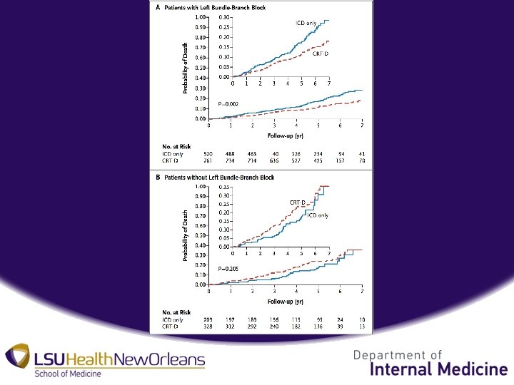 • CRT-D in Patients Without LBBB – At 7 years, no significant difference in cumulative rate of death between CRT-D and ICD only • P value = 0. 21 – At 7 years, no significant difference in rate of HF events • P value = 0. 58 • Trend toward increased risk of death and HF events >7 years