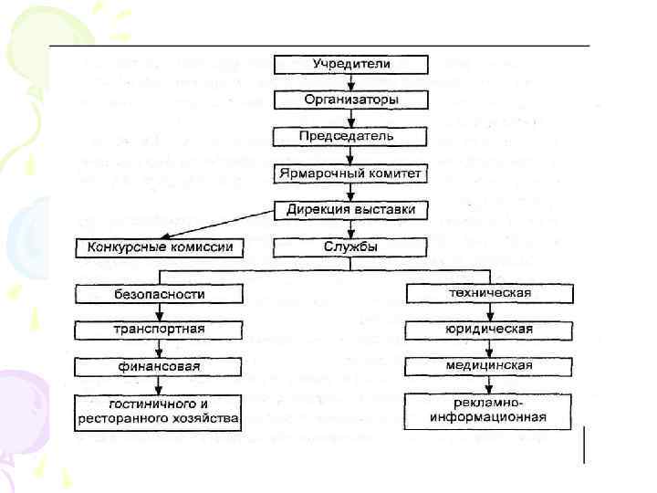 Заключительный этап • регистрацию посетителей после окончания работы ярмарки, проявивших интерес к производителю товаров; • подведение итогов работы ярмарки: баланса затрат и доходов с выделением положительных и отрицательны моментов в этапах ее работы; • анализ оригинальных решений по оформлению выставочных стендов фирм — производителей продуктов питания; • выяснение, достижения ярмаркой поставленных целей; • предложение рекомендаций на будущее с учетом замечаний.