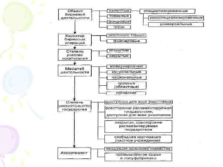 • Товарная биржа это организация с правами юридического лица, формирующая оптовый рынок путем организации и регулирования биржевой торговли, осуществляемой в форме гласных публичных торгов, проводимых в заранее определенном месте и в определенное время по установленным ею правилам.
