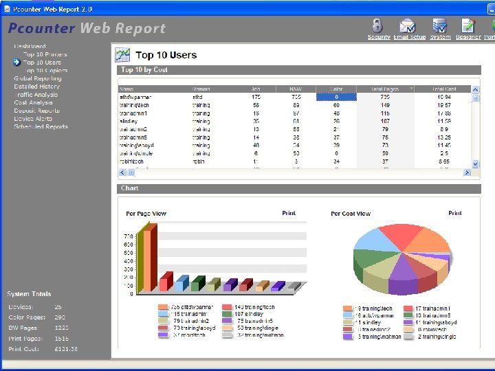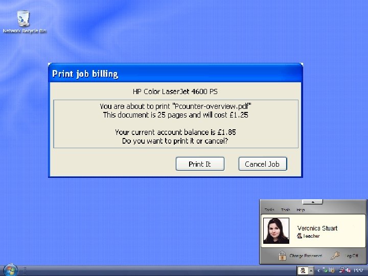 Users can see total printer credit balance available Cost per page for specific printers can also be viewed Encourages users to “think before they print”