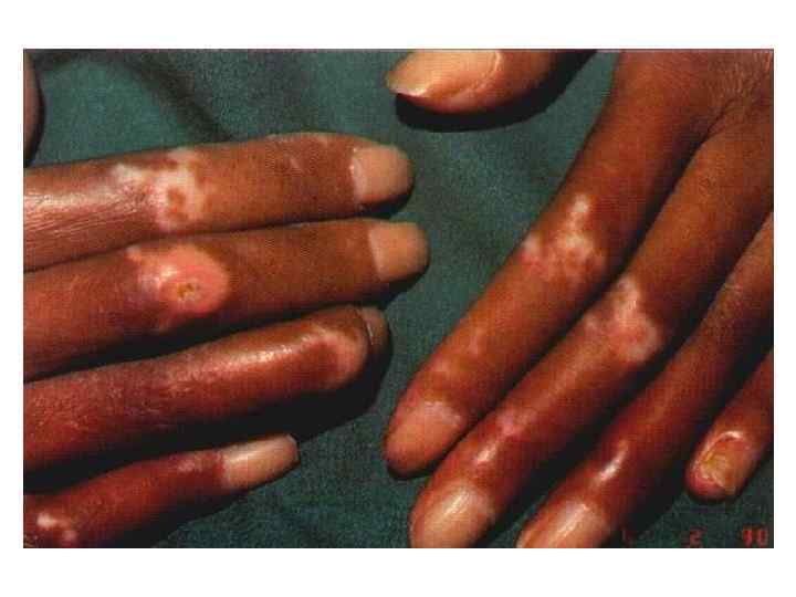Классификация склеродермии (продолжение) 6. Индуцированная склеродермия: • химическая, лекарственная (кремниевая пыль, хлорвинил, органические растворители, блеомицин и др. ); • вибрационная (ассоциированная с вибрационной болезнью); • иммунологическая (“адъювантная болезнь”, хроническая реакция отторжения трансплантата); • паранеопластическая или опухоль-ассоциированная склеродермия.