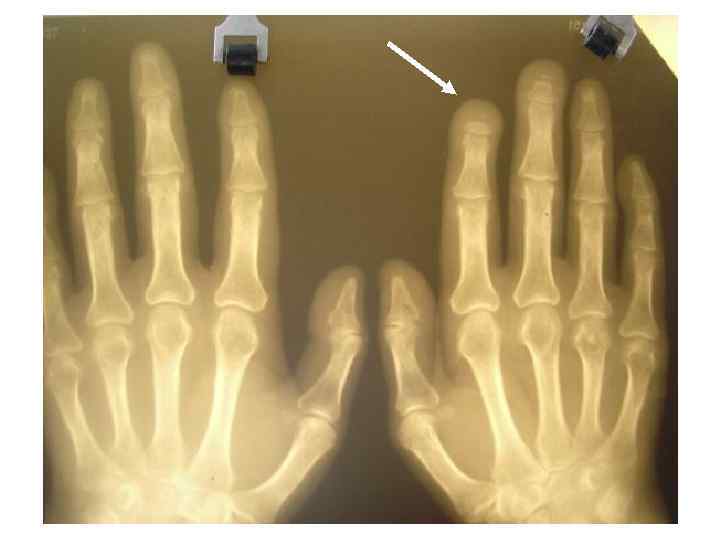 Дополнительные методы обследования • Рентгенография 1 плюснефалангового сустава и кистей • Содержание мочевой кислоты (0, 36 - 0, 42 ммоль/л) • Поляризационная микроскопия
