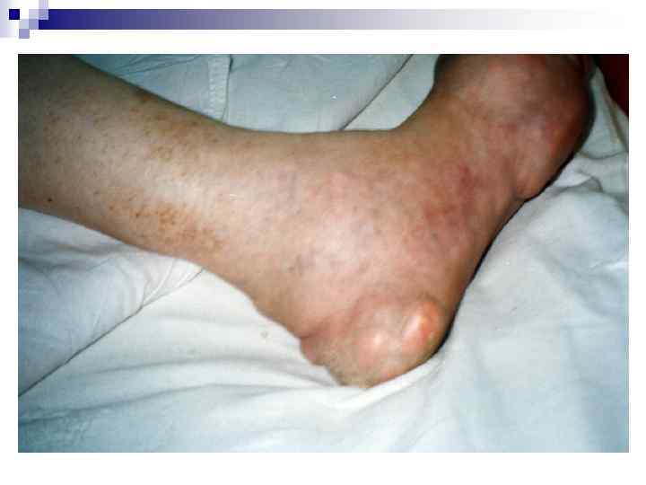 Классификация подагры Первичная 2. Вторичная – лимфопролиферативные заболевания, ХПН, отравление свинцом Суставные поражения n Интермитирующая форма n Острый приступ n Хронический полиартрит Внесуставные поражения n Поражение почек n Поражение сосудов 1.