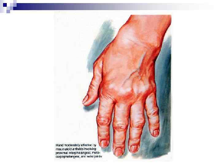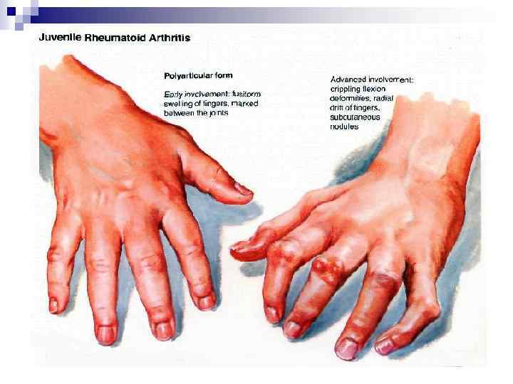 Дифференциальный диагноз при симметричном полиартрите С внесуставными Без явных проявлениями внесуставных проявлений Ревматоидный артрит Остеоартрит Пирофосфатная артропатия Псориатическая артропатия Ревматоидный артрит Системный склероз (ССД) Системная красная волчанка Полимиозит Хронический вирусный гепатит Реактивный артрит (хронический вариант) Паранеопластическая артропатия Псориатический артрит ВИЧ-ассоциированные синдромы