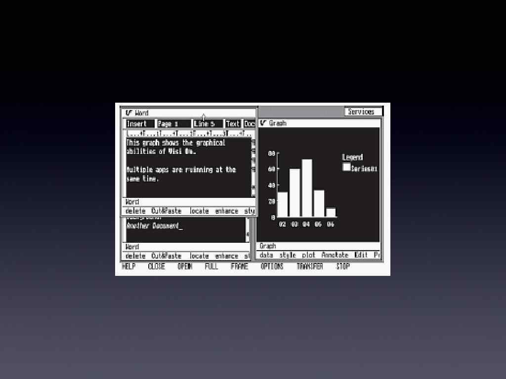 История графичных интерфейсив • Вперше термин «Графичный интерфейс користувача» (англ. «GUI» ) був выкорыстаный науковцем Дугласом Энгельбартом