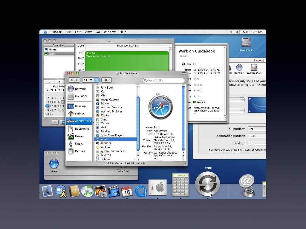 Вiкна в системi мають стилiзацiю пiд рiзнi матерiали (наприклад, шкiра) та предметы (наприкад, книга).
