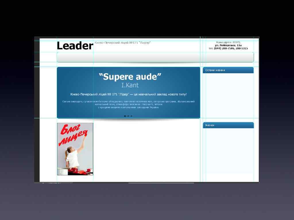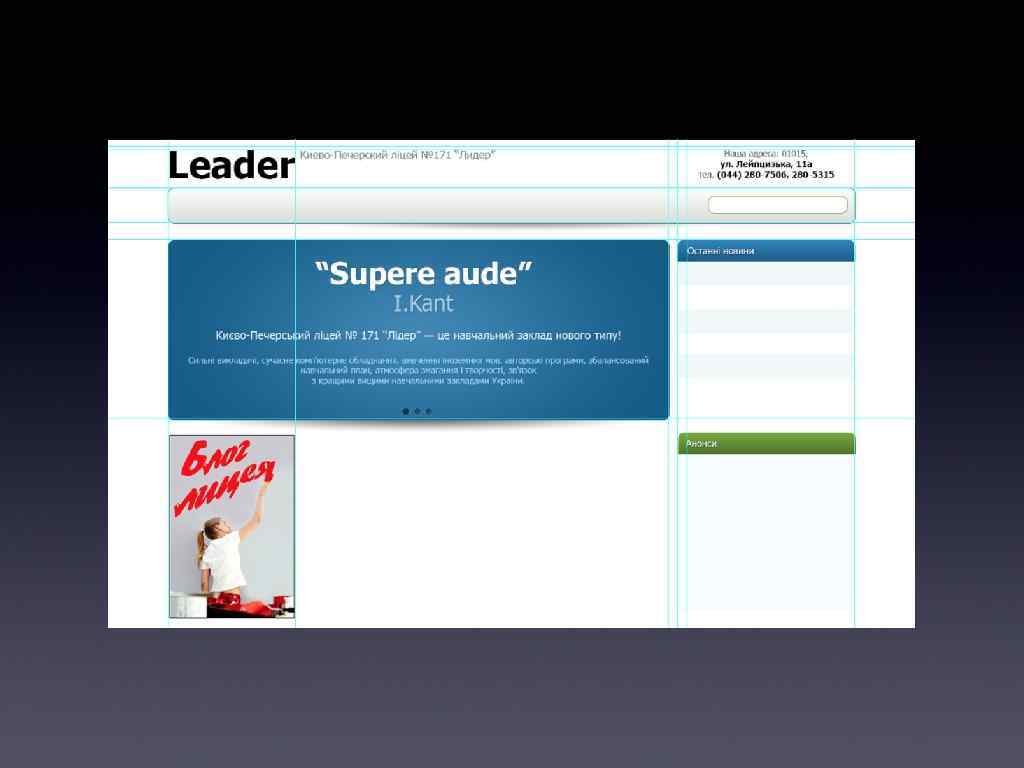 Сайт 171 -го лiцею — типовый сайт учбового закладу. Його потрібно переробити.