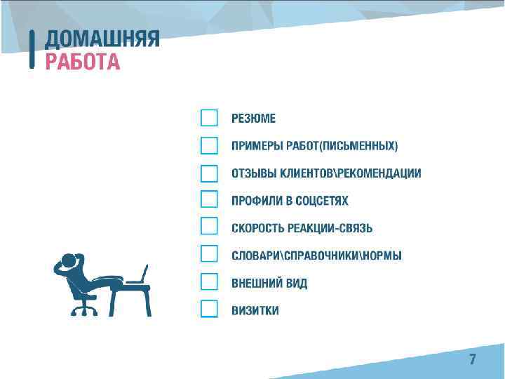 • Неофициальный адрес почты • Письмо без формального резюме • Фото в купальникес друзьямив темноте • Неаккуратнос ошибкамикусками составленное резюме • Нет резюме на рабочем языке • Массовая рассылка по бюро переводов • Рассылка в нерабочее время • Резюме без примеров перевода, расценок, контактов для обратной связи