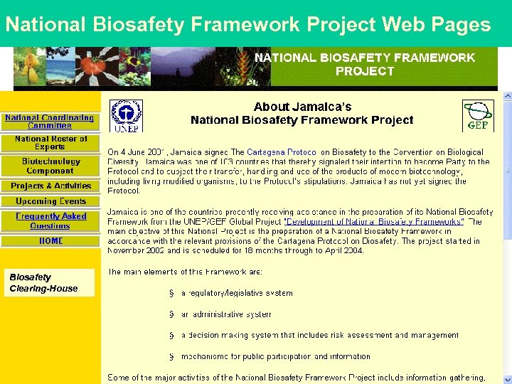 National Biosafety Framework Project Web Pages Biosafety Clearing-House