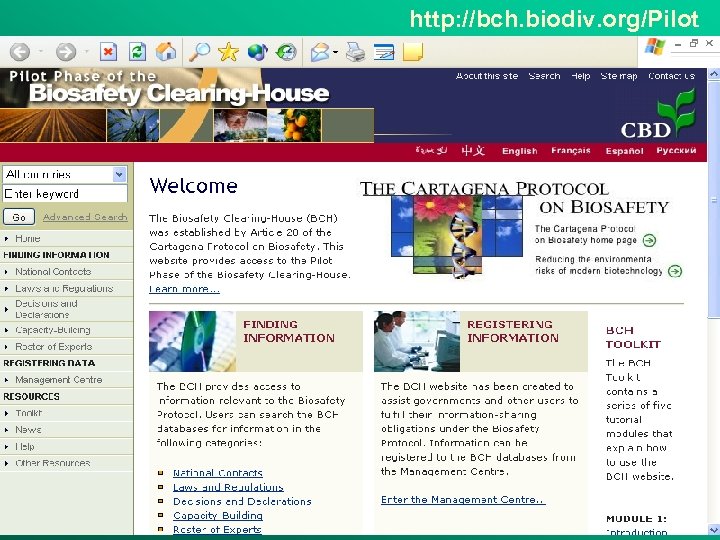 http: //bch. biodiv. org/Pilot