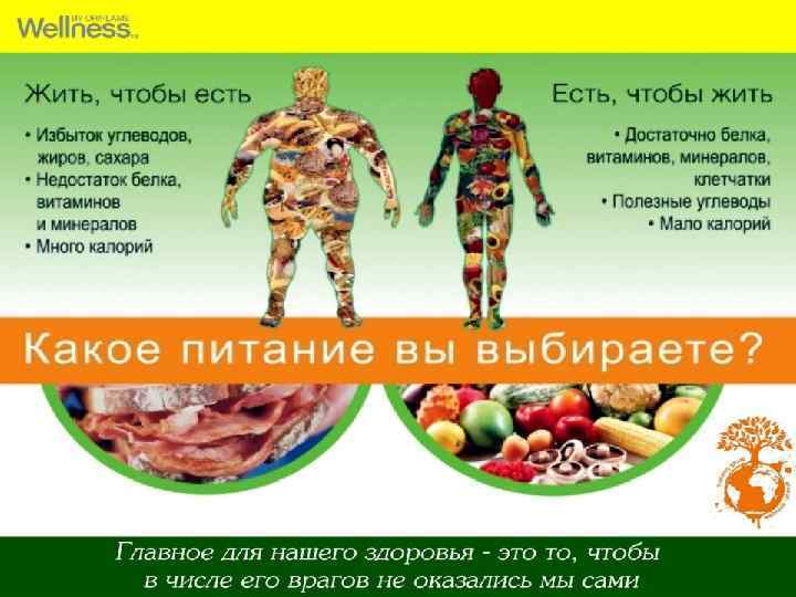Светофор питания Основан на пирамиде питания гарвардской Школы общественного здоровья Ешьте чаще в больших количествах Ешьте чаще в умеренных количествах • Злаки и крупы (цельнозерновые хлеб и макароны, хлопья, дикий рис) • Разноцветные овощи • Фрукты • Рыба • Птица (курица) • Яйца • Морепродукты • Орехи, семена и бобовые • Обезжиренные молоко (< 0, 5% жира) и сыр (< 17% жира) • Растительные масла (оливковое, подсолнеч-ное и т. д. ) ОБРАЗ ЖИЗНИ И ПИТАНИЕ Избегайте или ешьте редко и в небольших количествах • Красное мясо • Масло, цельное молоко • Жирный сыр • Рафинированные злаки (шлифованный рис, белые хлеб и макароны) • Газированные напитки, сладости, выпечка • Соль