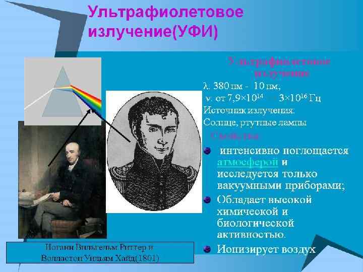 В- средневолновые УФ лучи – испускают лечебные лампы, а также небольшое количество средневолновых УФЛ обнаруживается в спектре активного весеннего солнечного излучения и в условиях высокогорья и морского побережья. За изобретение искусственных источников средневолновых УФЛ в 1903 году была присуждена Нобелевская премия. Именно средневолновое УФО обладает наиболее выраженной биологической активностью.