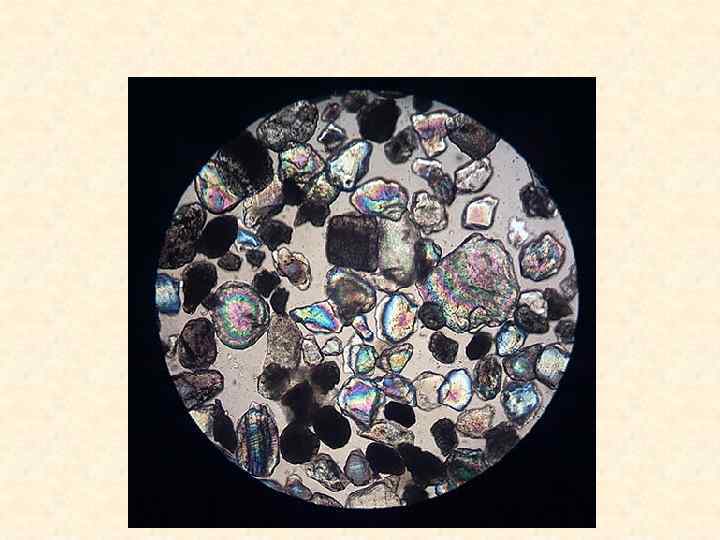 Микропрепарат миокарда в поляризованном свете при внезапной смерти от острой коронарной недостаточности — выявляются участки, в которых отсутствует характерная поперечная исчерченность кардиомиоцитов; × 400 Микропрепарат миокарда в поляризованном свете в норме