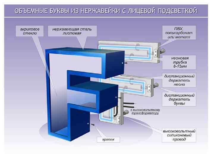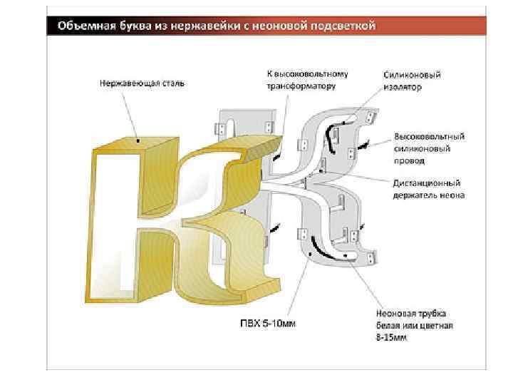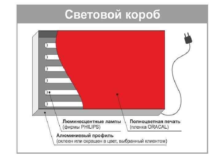 • Деколюм (decolume strip light) - система для подсветки объемных букв и декоративного освещения помещений. Состоит из кабеля и патронов под лампу накаливания 12 В или 24 В мощностью 5 Вт или 10 Вт. Патроны устанавливаются на кабеле с необходимым для потребителя интервалом. Подключается к сети 220 В через понижающий трансформатор, срок службы 1 000 ч.