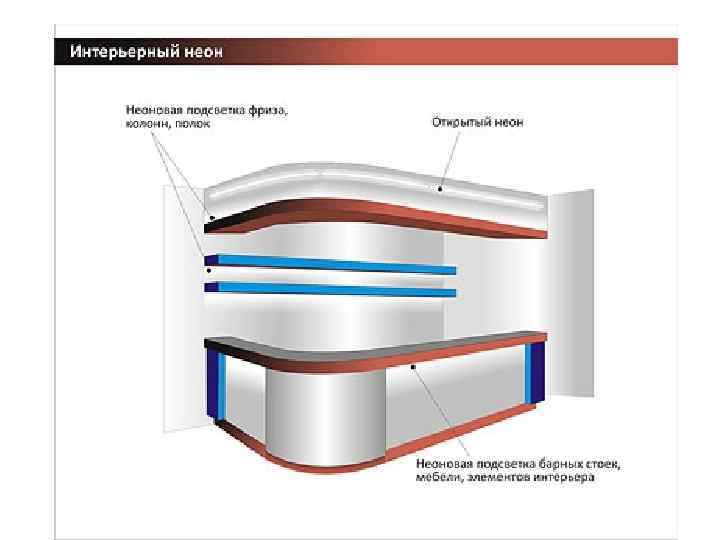 • Леднеон - матовая ПВХтрубка, внутри которой находятся светодиодные линейки (одноцветные или семи разных цветов - MULTICOLOR). Соединяя между собой трубки, можно создавать дисплей разной длины и ширины. Также изделие используется для контурной подсветки зданий и мостов, интерьеров, создавая необыкновенный эффект за счет динамики света.