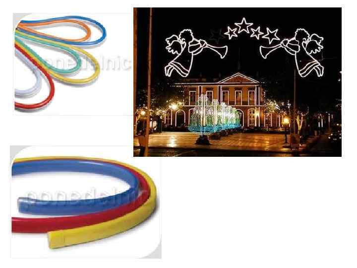 • LED NEON FLEX - светодиодная гирлянда, заключенная в трубку, покрытую слоем ПВХ. Является достойной альтернативой неону, не уступая ему в яркости и, в тоже время, лишен всех неудобных и раздражающих недостатков неона (хрупкость, трудность установки, высокое напряжение). «Гибкий неон» (Led Neon Flex) потребляет всего 4 Ватта на 1 метр длины шнура, ресурс работоспособности диодов составляет 100 000 часов, подходит как для внутреннего, так и для наружного применения. • Леднеон-флекс применим для архитектурной и интерьерной подстветки, декорирования сводов, арок, фасадов. Незаменим для использования на фризах и стелах АЗС.