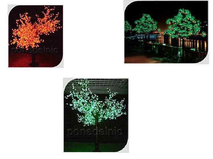 • LED-деревья являются уникальными праздничными украшениями, которые могут использоваться самостоятельно и в комплексном оформлении объектов. LED-деревья обладают ярким и притягивающим внимание свечением, видимым с большого расстояния, невысоким энергопотреблением. LED-деревья просты в монтаже и удобны в транспортировке.