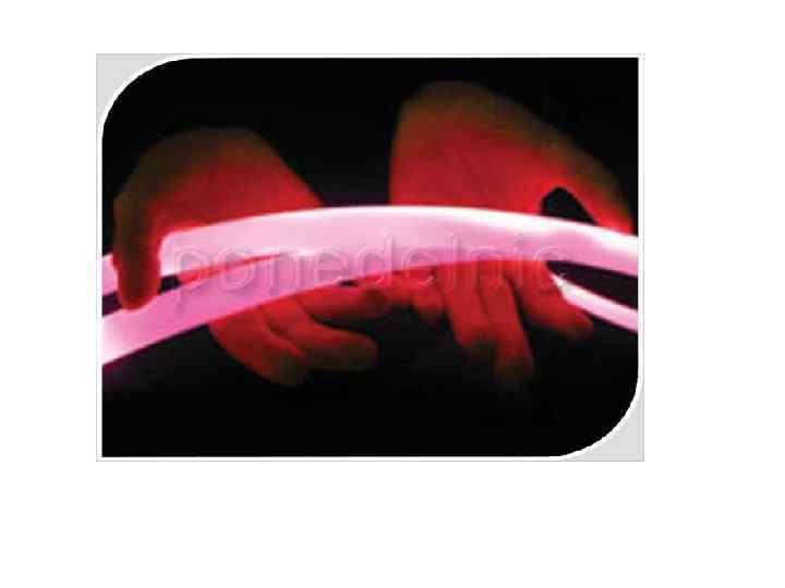 • Оптоволокно - гибкий, яркий и абсолютно безопасный световолоконный кабель. Технология оптоволоконной системы основана на мгновенной передаче света по оптоволоконному кабелю на большие расстояния с минимальными потерями. При подсоединении к источнику света кабель наполняется ровным светом и пропускает через себя световой поток. Внутри волокна свет распространяется благодаря явлению полного внутреннего отражения и свободно излучается другим концом оптоволокна, причем цвет кабеля меняется при каждом повороте светофильтра, находящегося внутри источника света.