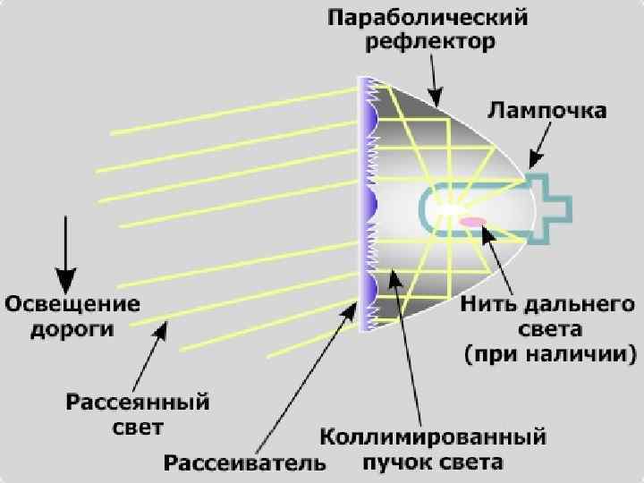 Классическая фара объединяет источник света, отражатель и рассеиватель