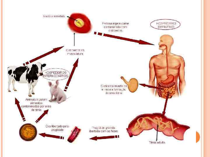 ПУТИ ЗАРАЖЕНИЯ Заражение происходит через грязные руки, зараженное белье и продукты питания. Если мясо зараженного животного не подвергнется достаточной тепловой обработке и попадет в организм человека, личинки активизируются и начнут развиваться во взрослые особи гельминта.