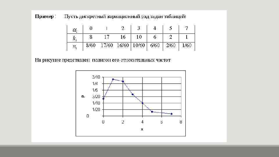 Пример построения вариационного ряда Пример. Имеются данные о тарифных разрядах 60 рабочих одного их цехов завода. Распределить рабочих по тарифному разряду, построить вариационный ряд.