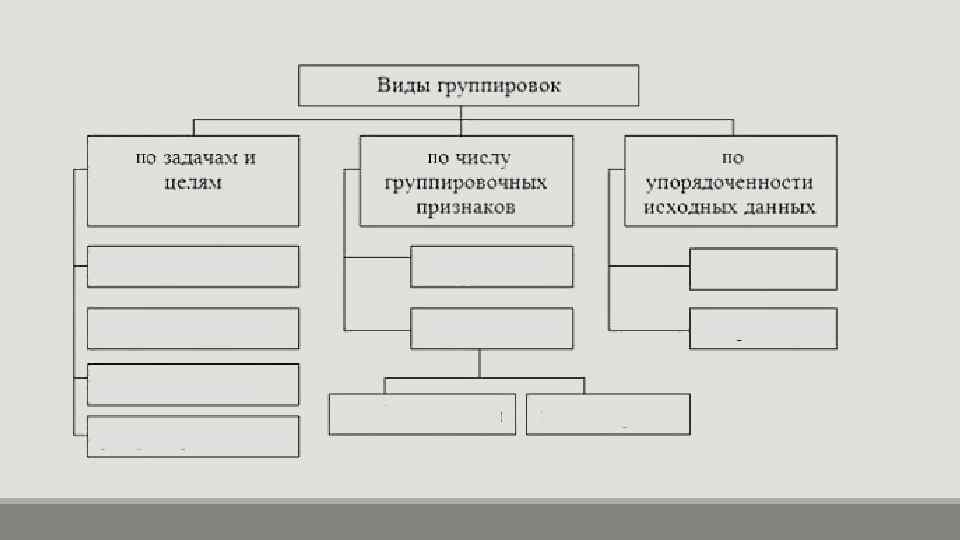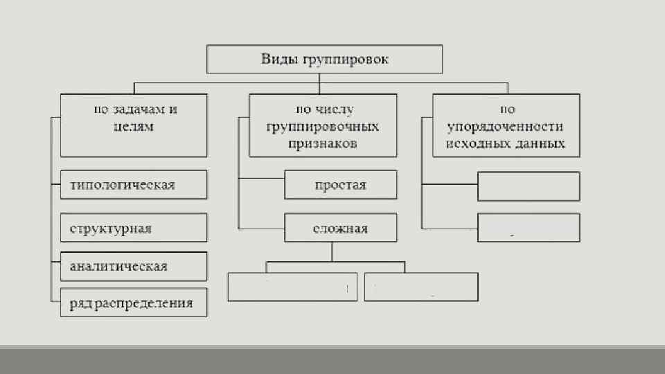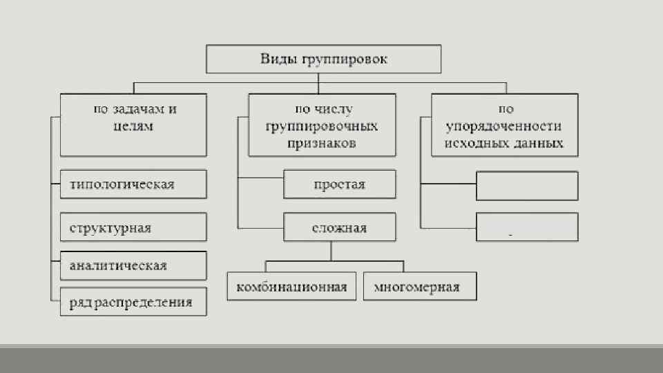 Типологическая группировка это разделение качественно неоднородной совокупности на отдельные качественно однородные группы и выявление на этой основе экономических типов явлений. Таким образом, основная задача такой группировки — это идентификация типов социально-экономических явлений, поэтому важное значение при ее построении должно уделяться выбору группировочного признака.