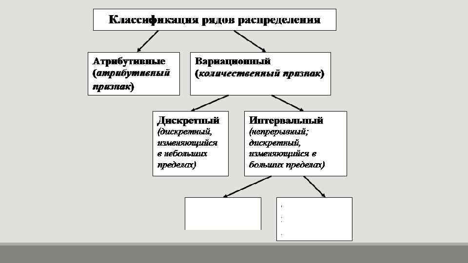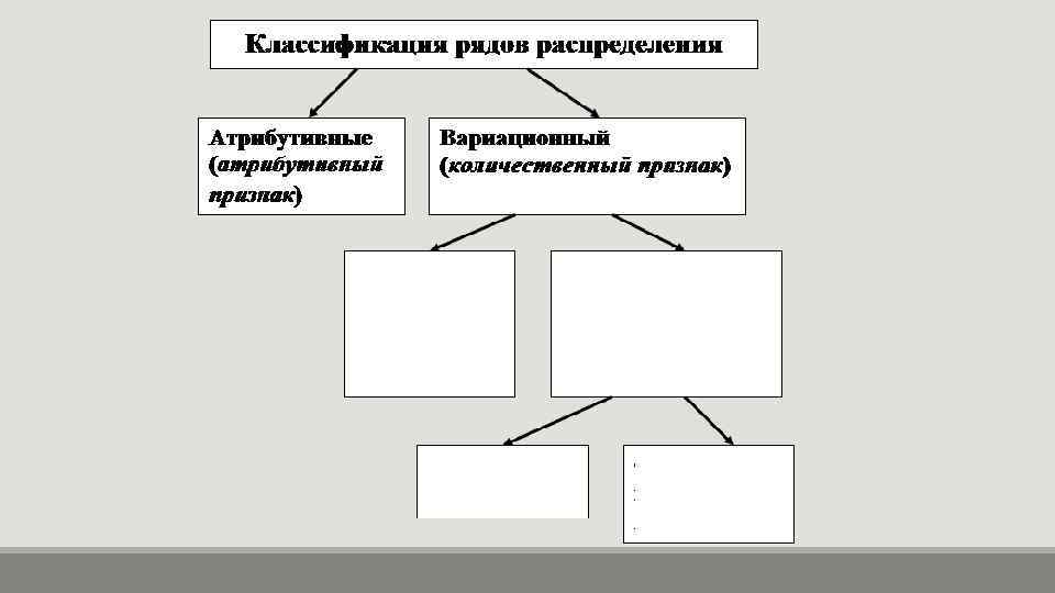 Ряд распределения В зависимости от признака, положенного в основу распределения, различают атрибутивные и вариационные ряды распределения. Атрибутивными называют распределения построенные по качественным признакам, т. е. признаками не имеющих числового выражения.