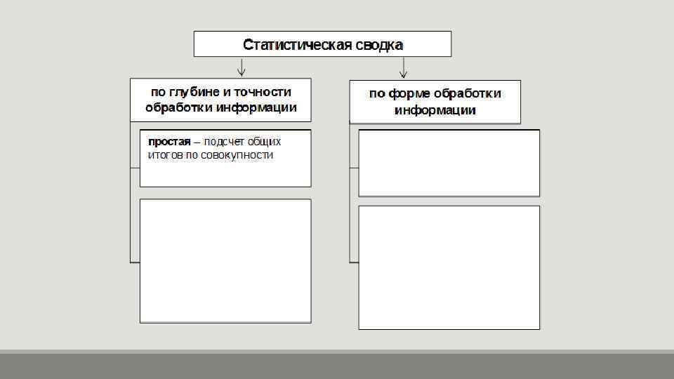Сводка представляет собой второй этап статистического исследования. Целью сводки является получение на основе сведенных материалов обобщающих статистических показателей, отражающих сущность социально-экономических явлений и определенные статистические закономерности.