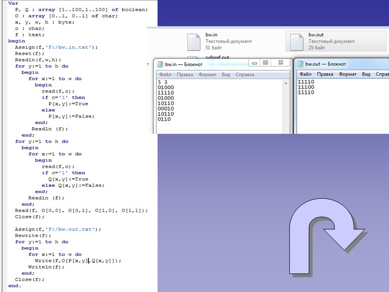 Решение олимпиадных задач. Язык программирования Pascal Пассажиры Условие Решение Наибольшее отношение. Условие Решение Ёжик Условие Решение Чёрно – белая графика Условие Решение Газон Условие Решение Abracadabra Условие Решение Курьеры Условие Решение Треугольник Условие Решение