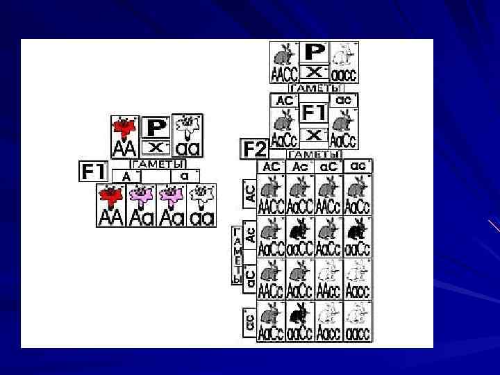 Неаллельные взаимодействия Описаны у многих животных и растений В потомстве дигетерозиготы расщепления по фенотипу: 9: 3: 4; 9: 6: 1; 13: 3; 12: 3: 1; 15: 1 Типы взаимодействия: комплементарность, эпистаз и полимерия