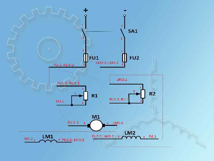 СХЕМЫ СОЕДИНЕНИЯ Ø Показывает связи между элементами устройства, чем они осуществляются, а также места присоединения и вводов; Ø Обязательно показывают выводы входящих в них аппаратов и приборов, отображая их расположение и нумерацию; Ø Для большей наглядности выводы каждого аппарата или прибора заключают в общую рамку; Ø При необходимости дают внутреннюю схему прибора или аппарата; Ø Для изображения отдельных элементов (резисторов, конденсаторов, электрических ламп, проводов и др. ) на схемах соединений используют обозначения, приведенные в стандартах ЕСКД; Ø Используется при разработке конструкторских чертежей, определяющих расположение и способы крепления проводов, кабелей, жгутов, трубопроводов и аппаратов. Ряд зажимов - (клемная колодка) Реле РТ-40 Резистор Кнопочный пост