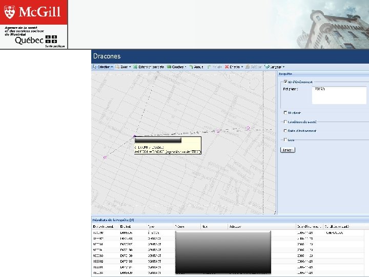 Vigie Multirisque: Data Sources v Emergency Departments w Currently: All 22 ED in Montreal via web form, total counts, no diagnosis or chief complaint w Future: Automated feeds under development, triage code and level, chief complaint, postal code v EMS Dispatch and Billing v Long-Term Care v Tele Health v Reportable Diseases