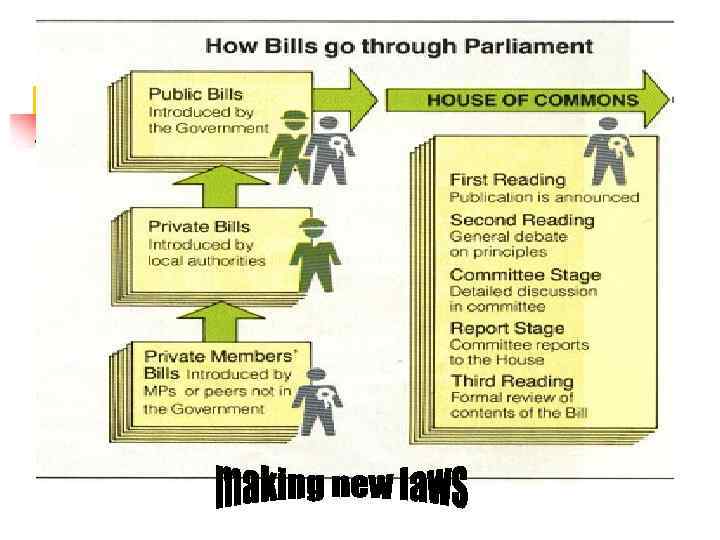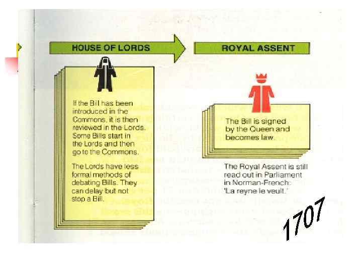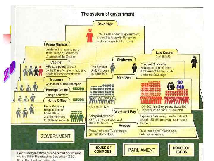 n n 650 constituencies MP PM 20 Cabinet Civil servants (25. 000) n n n Peers 70% hereditary 30% ‘life peers’