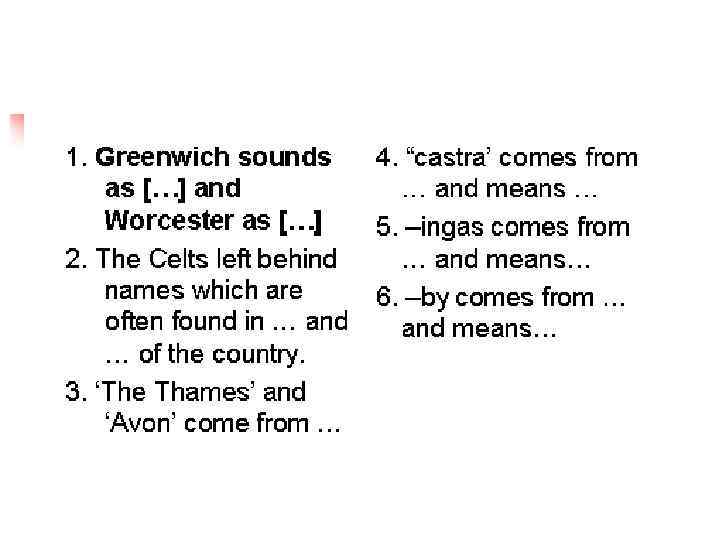 1. There are 2 languages in Scotland: …and… 2. Avatar means… and comes from… 3. …. Rhyming slang is used in … of London 4. … language is very much alive as it is taught at school. 5. Australian slang: (3) 6. New Zealand slang: (3)…