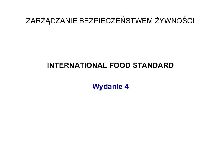 ZARZĄDZANIE BEZPIECZEŃSTWEM ŻYWNOŚCI INTERNATIONAL FOOD STANDARD Wydanie 4