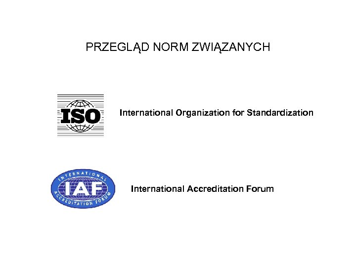 PRZEGLĄD NORM ZWIĄZANYCH International Organization for Standardization International Accreditation Forum